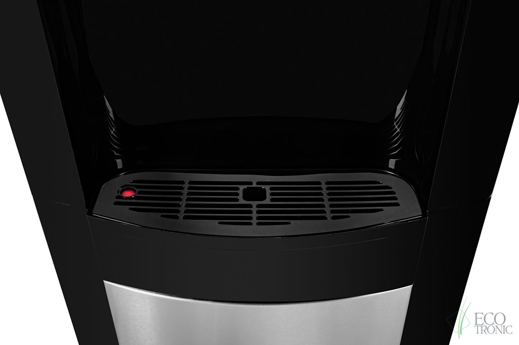Ecotronic P9-LX Black - кулер с нижней загрузкой бутыли. Специальная изогнутая, регулируемая по длине заборная трубка позволяет производить забор воды из бутыли без остатка. Три крана подачи воды: горячая, прохладная и холодная. Лоток со встроенным поплавком, сигнализирующим о заполнении. Закачка воды в систему кулера происходит с помощью водной помпы. Выкатная полка отсутствует. Кран горячей воды с опциональной защитой от детей: чтобы ее подключить, свяжитесь с нашим сервисным центром.