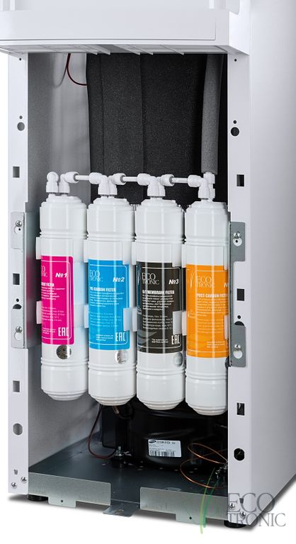 Пурифайер напольного типа с ультрафильтрационной системой очистки воды. Большие баки холодной (8 л) и горячей воды (7,7 л).